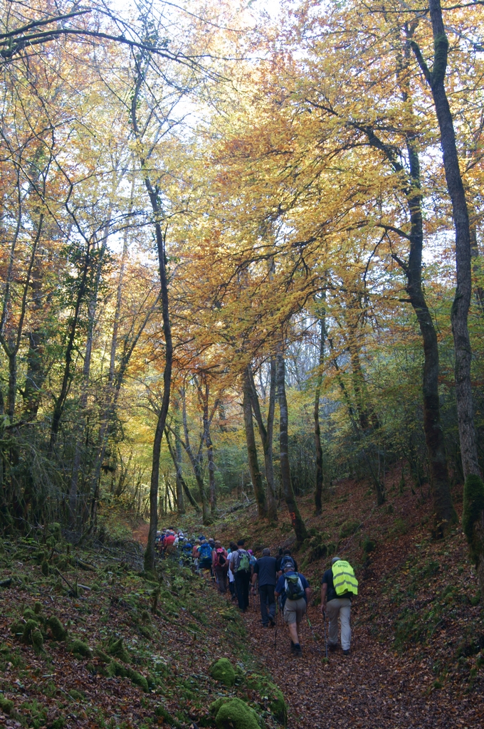 Montée par la Combe de la Chapelle aux Chiens pour basculer à Arcey, village blotti dans un amas de verdure.